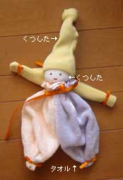 しかもよくよく見ると、頭と手が靴下で出来てて、